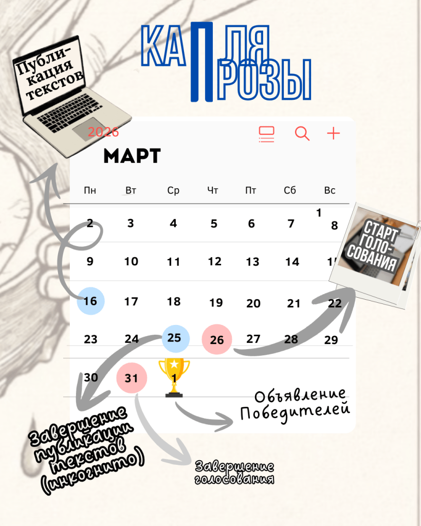 16 — 26 марта публикация текстов инкогнито (ориентировочно по три в день)